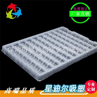 产品特点:吸塑加工厂采用本色PP材质按照客户提供的实物而设计定制的样式经吸塑工艺热成型加工后形成的吸塑制品,本款产品环保无公害,尽显高端大气,为产品增值提升档次。PP吸塑托盘在运输过程中起到很好的保护作用,避免在运输过程中因碰撞、挤压而导致产品变形、损坏,从而影响公司形象。
