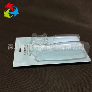 产品特点:本款吸塑是由深圳吸塑厂采用透明PVC片材为原材料,所用材质环保无公害,尽显高端大气,为产品增值提升档次。化妆品折边吸塑在运输过程中起到很好的保护作用,避免在运输过程中因碰撞、挤压而导致产品变形、损坏,从而影响公司形象。化妆品折边吸塑使用插卡的设计形式,便于实物的安放与取出,飞机孔设计有利于产品的悬挂。