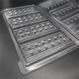 产品特点:本款产品是由深圳吸塑加工厂采用透明PET材质按照客户提供的实物而设计定制的样式经吸塑工艺热成型加工后形成的塑料制品,光模块吸塑托盘本款产品环保无公害,尽显高端大气,为产品增值提升档次。光模块吸塑托盘在运输过程中起到很好的保护作用,避免在运输过程中因碰撞、挤压而导致产品变形、损坏,从而影响公司形象。