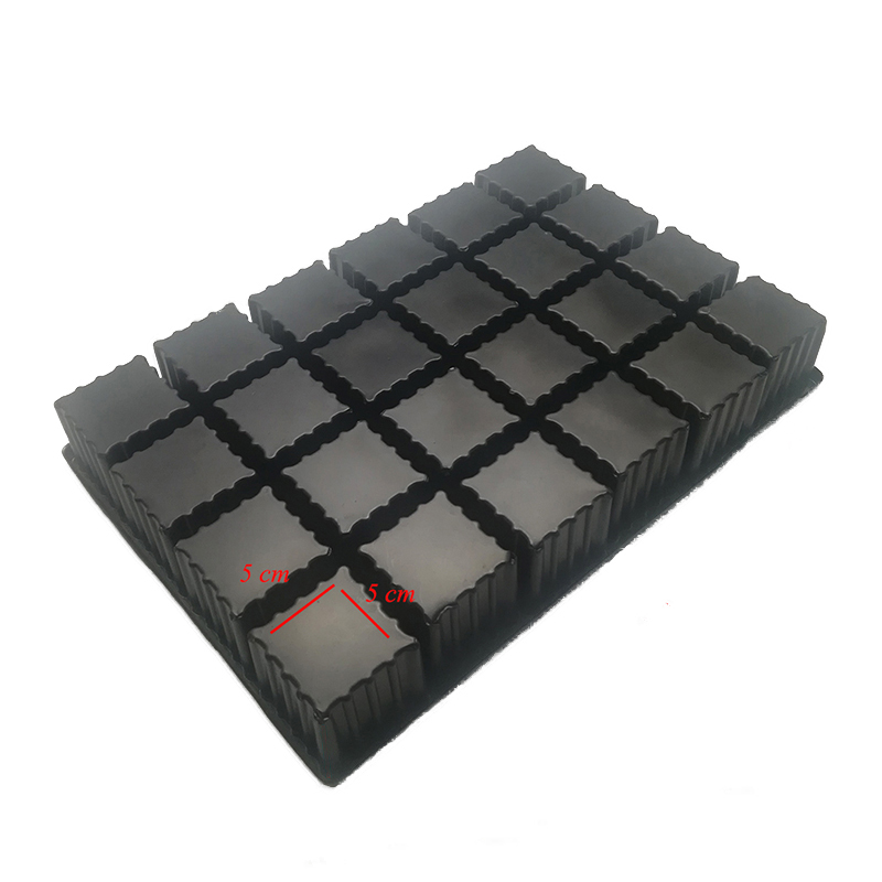 描述:深圳吸塑加工厂依据客户要求制作图纸,在得到确认后安排铝模打样,生产由整版铝模生产,线条优美有型,采用厚的黑色PS材质,内格尺寸50*50*55mm,可用于装坚果、零食食品,也可装各类电子五金零件。