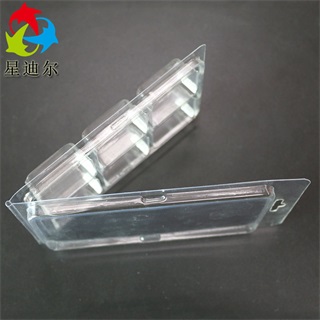这款石蜡羞羞视频在线看免费产品采用透明PET为原材料,经过吸塑工艺热成型后形成的塑料制品,再由刀模冲切出完整的羞羞视频在线看免费盒。颜色透明,便于在销售中的展示,材质环保对环境无污染,是一款“绿色”产品。石蜡羞羞视频在线看免费采用对折的设计形式,放入实物后加一张印有产品信息的卡纸,经扣位扣紧,节约的成本,也便于吸塑产品的销售和展示。